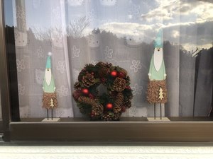 家にもサンタさんが今年は、家の中から外を覗いています。
