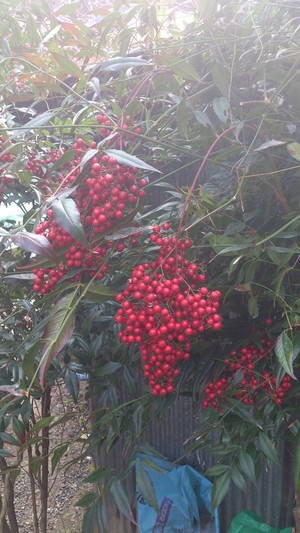 改装中のお家の庭にある南天です。